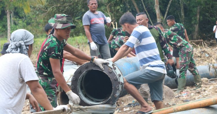SOLOK - Di tengah puing-puing sisa bencana banjir dan galodo yang melanda Kota Solok dan Kabupaten Solok, semangat kebersamaan justru membuncah. Personel Kodim 0309/Solok, tak terkecuali dari Batalyon Infanteri (Yonif) TP 844/Siginjai, bergerak cepat menjangkau titik-titik terdampak untuk memberikan bantuan vital. Kali ini, fokus mereka adalah memulihkan akses air bersih bagi ribuan warga yang terdampak. Bersama jajaran PDAM Kota Solok dan Kabupaten Solok, mereka berjuang keras memperbaiki pipa induk PDAM yang rusak berat akibat terjangan banjir di ulu sungai Nagari Koto Baru, Kecamatan Kubung, Kabupaten Solok, pada Rabu, 3 Desember 2025.