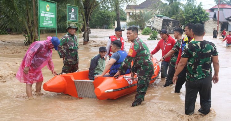 SOLOK - Menyikapi kondisi darurat akibat curah hujan tinggi yang melanda Kota Solok, jajaran Kodim 0309/Solok bergerak cepat. Dandim 0309/Solok, Letkol Kav Sapta Raharja, S.I.P., M.Han., memerintahkan langsung prajuritnya untuk terjun ke lapangan guna memberikan bantuan evakuasi kepada warga yang terdampak musibah banjir.